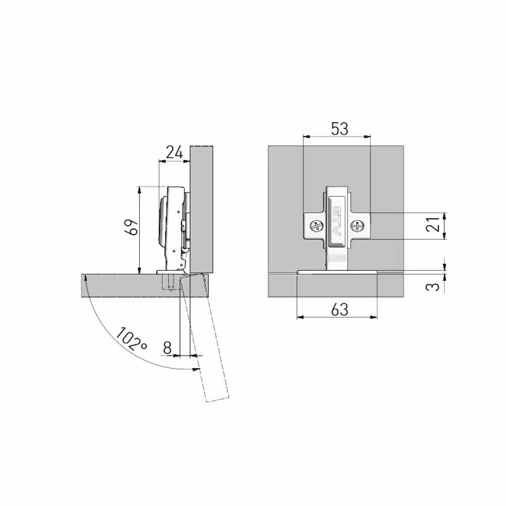 | Угол открывания | 102 |