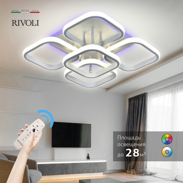 Потолочная люстра светодиодная с пультом регулировкой цветовой температуры и яркости Hedwig RGB - продукт известной компании Rivoli (Италия). Имеет максимальную мощность 73 Вт, освещает площадь до 14.6 кв. м. Отлично подойдет для таких мест, как гостиная, холл, спальня, кабинет, офис. Впишется в интерьеры следующих стилей: модерн.