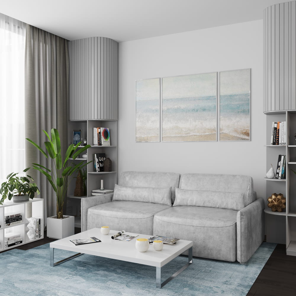Дизайн на 360 градусов. Задняя стенка дивана выполнена в той же ткани, что и основная часть, поэтому диван идеально подойдёт для помещений с открытой планировкой.