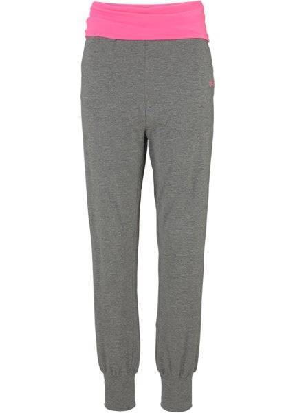 Брюки-джоггеры на контрастном поясе (серый меланж) bonprix для женщин
