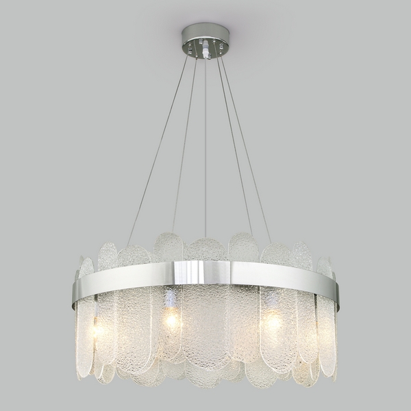 Создать качественное освещение вам поможет современная подвесная люстра с фактурным стеклом 333/8. Простые минималистичные формы и умеренные тона станут прекрасным дополнением для вашего интерьера. Люстра украсит потолок вашего помещение и создаст полноценное освещение на площади 20 м². В люстре рекомендуется использовать сменные лампы накаливания с цоколем Е14 с максимальной мощностью 60 Вт. В производстве люстры использовали высококачественный материал арматуры с надежным защитным покрытием.