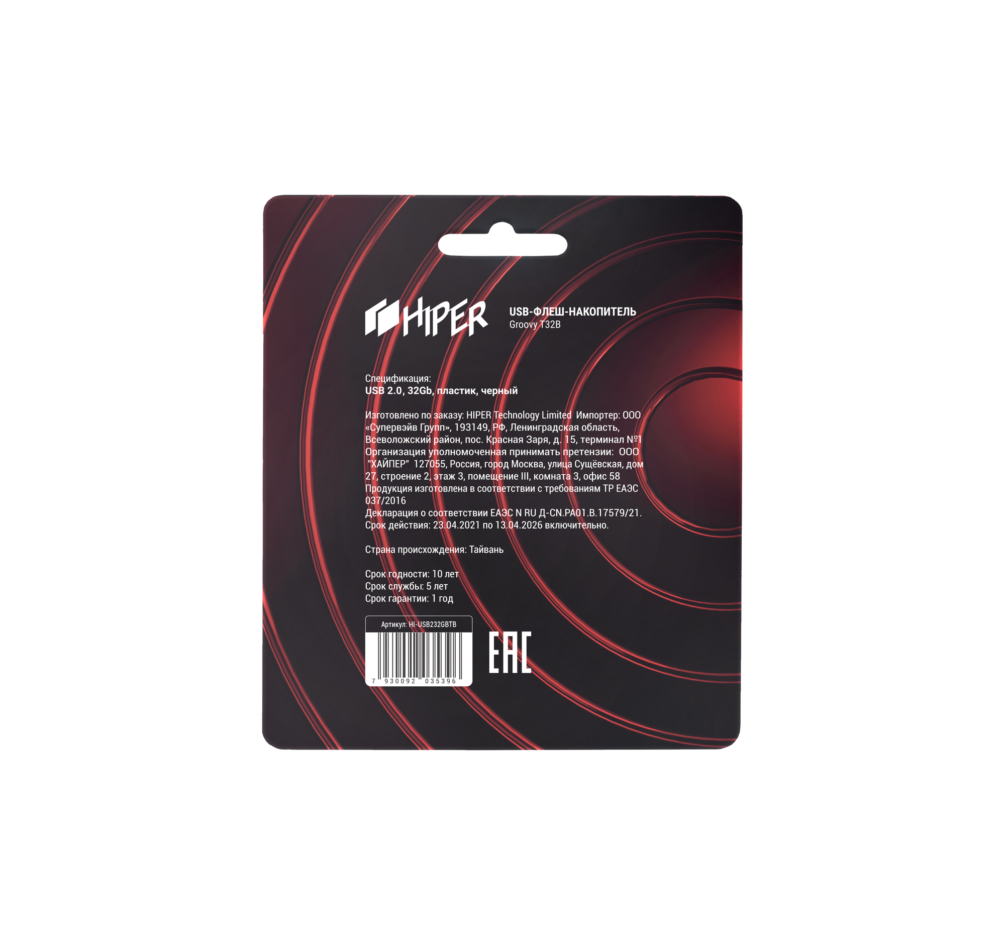 Накопитель USB 2.0 32GB HIPER Groovy T32