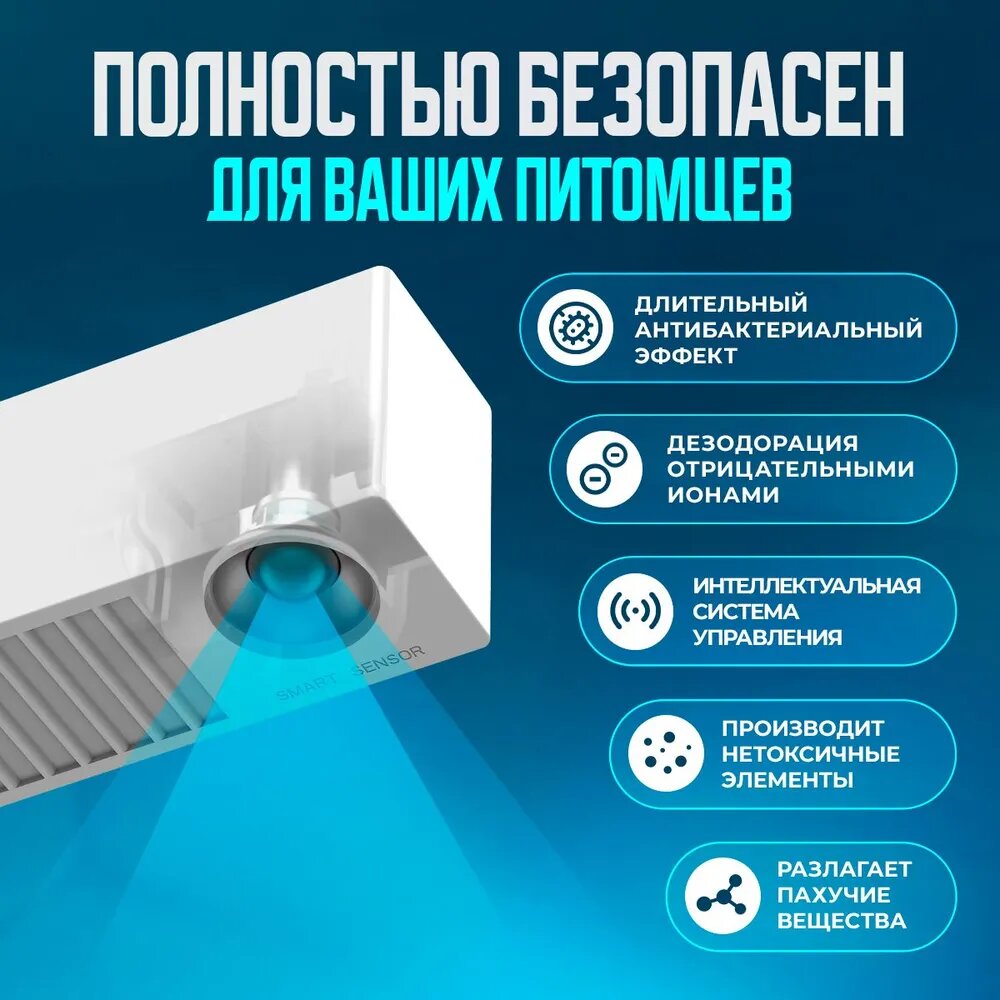 Автоматический очиститель воздуха Petkit устраняет неприятный запах после того, как Ваш питомец сходил в туалет. Нейтрализует запах, предотвращая его распространение на другие комнаты. Ионизирует воздух, устраняет бактерии. Благодаря специальному датчику определяет нахождение питомца и автоматически включает режим очистки воздуха.Никого шума во время использования. Очиститель начнет свою работу только тогда, когда питомец выйдет из лотка, чтобы не напугать и не отвлекать его от главного процесса.За один час устраняет 95,88% бактерий.Тщательно подобранная комбинация из 20 натуральных растительных веществ не вызывает аллергию у Вас и Вашего любимца.КомплектацияАвтоматический очиститель воздуха Petkit Съемный фильтр для очистителя воздуха 1-шт Наклейки для фиксации очистителя воздуха на стену - 4шт