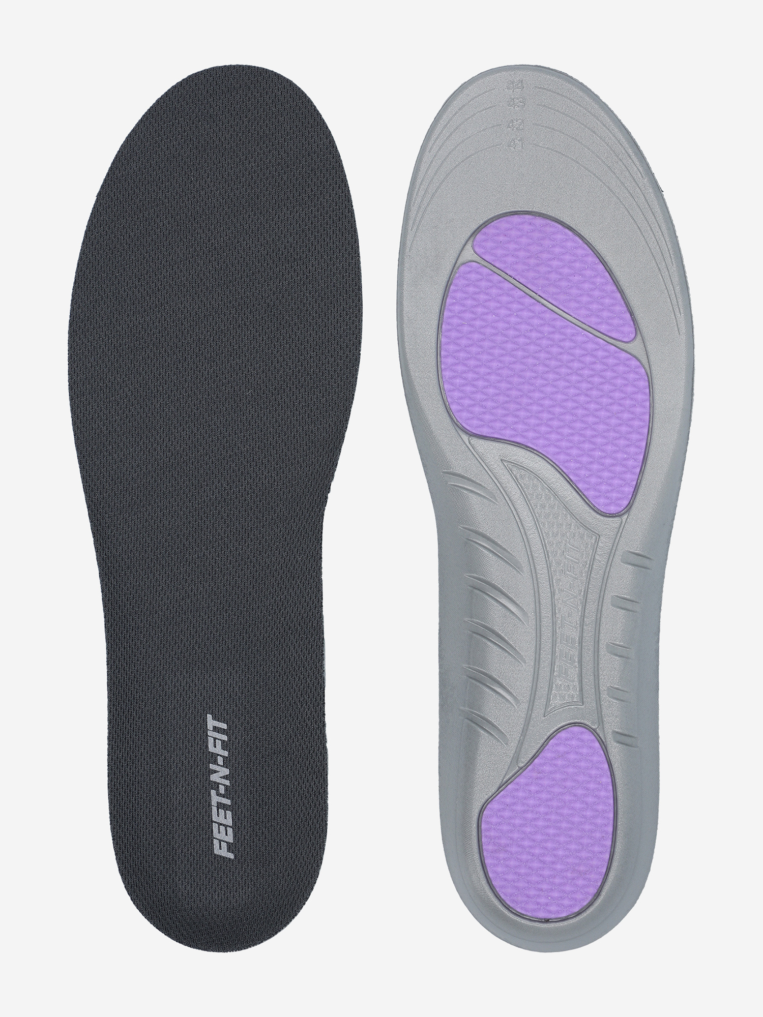 Вводное описание | Стельки анатомической формы с гелевыми вставками амортизируют при ходьбе или беге и гарантируют комфорт. Рельеф стельки имеет выкладку продольного свода стопы и чашеобразное углубление для пятки, что позволяет стопе занимать анатомически правильное положение. Верхний слой из текстильного материала обеспечивает циркуляцию воздуха, впитывает влагу, предотвращает появление неприятного запаха и развитие бактерий. Стельки могут быть обрезаны до нужного вам размера |
