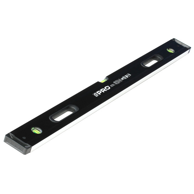 Профессиональный трёхкамерный уровень, изготовленный из алюминиевого профиля ''PRO 1000''. Двустороннее фрезерование обеспечивает идеальный контакт уровня с поверхностью и предотвращает соскальзывание уровня с рабочей поверхности. Форма уровня позволяет удобно держать его в руке, специальные ручки помогают зафиксировать уровень во время измерений, боковые стенки запроектированы так, чтобы добавить уровням серии ''PRO 1000'' дополнительной рельефности. Специально разработанный глазок с системой ''Easy Reading System Plus'' - эффект увеличительной линзы - глазок визуально кажется больше. Жидкость ампулы защищена от УФ-излучений, поэтому она не изменит свой цвет. Точность - 0,5 мм/м, при этом результат одинаково точен с двух сторон - такая же точность при измерении в перевернутом положении над головой. Точность измерений сохраняется при температуре окружающей среды от -30°С до +50°С. Два глазка вертикали позволяют проводить измерения на вертикальной поверхности независимо от того с какой стороны взят в руки уровень, что сокращает дополнительные манипуляции и делает работу с уровнем более удобной. Заглушки из эластомера обеспечивают амортизацию удара при вертикальном падении уровня.