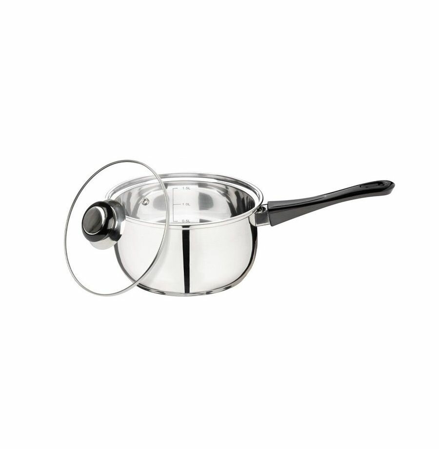 Ковш из нерж стали, объем 1,9 л, с бакелитовой ручкой и крышкой из жаропрочного стекла